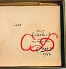 With Dedication to Nicolous Rauch with pink painted design on title page. Four mixed etchings, of which two are printed in black, one in black with bistre border, and one in blue. Book signed by artist. Original wrappers in original cloth box. 9 7/8 x 12 7/8 inches.