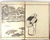 Two volumes. Originally published about 1795, later revised and enlarged issues were published in 1799 and 1824. Includes sixty-two pages of black and white illustrations, without the Haiku poems of the 1795 version; original brown covers with subtle embossed foliage decoration and original title labels. A native of Kyoto, Ki Baitei's art was greatly influenced by Yosa Buson, a poet and painter, under whom he studied. This is listed in Graphic Art of Japan/The Classical School by Owen E. Holloway (1957) page 104, as among the chief albums of artists of the classical school and reproduced among his black and white figures at the end. It is a fine example of a beautiful book with wonderfully bold black and white lines in observation of street and pastoral life, flowers and sky. Compositions are sometimes astoundingly simple in line and they do not continue across the double page, though the balance seems always to be carefully considered.