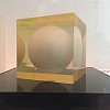 Relationships between content and containor. Relating a fixed volume to a module for comparison increases perception of its consistency. Opaque white resin sphere in clear resin. Published by Edizioni Danese, Milano in an edition of 50, this one in excellent condition. These cubes recall the geometric compositions of "historic abstractionism" of Kazimir Malevich