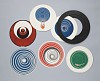 Series of six double sided circular offset lithographs from the 1934 edition, with a black cardboard stand and folding carton box, including instructions and printed signature.