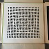 Using a series of three related and repeated three-dimensional elements of squares, triangles and rhombi with equal bases inside a square space with one rectangular bar, Enzo Mari produces a natural phenomena engaging the viewer's participation. The rotation of the square produces nearly infinite combinations as the pieces fall into place.